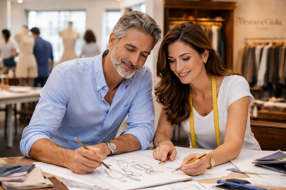 Da oltre 10 anni, Bruno e Giulia condividono una profonda passione per la moda e lo stile italiano. Dopo aver studiato presso prestigiose scuole di fashion design a Milano, hanno entrambi maturato esperienza lavorando nel settore, sviluppando un occhio attento per i dettagli e le tendenze.